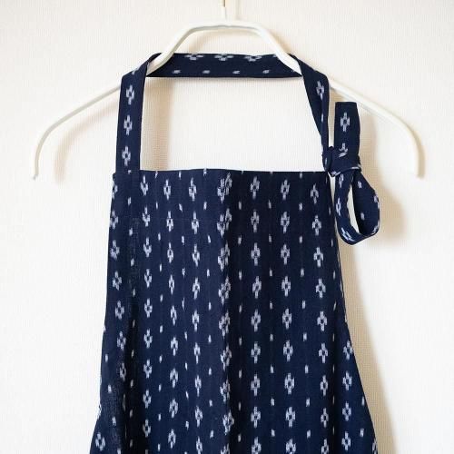 久留米絣胸当て付きエプロン(グレー十字柄)